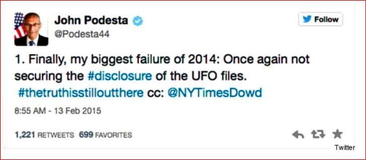 Mails dévoilés par WIKILEAKS entre Tom DeLonge et John Podesta, l’ancien directeur de campagne d’Hilary Clinton le confirment indirectement : « Souviens-toi que des extraterrestres provenant de l’univers voisin sont prêts à nous aider avec des technologies permettant de maitriser l’énergie du point zéro de la terre. Mais ils ne supporteront aucune action de guerre, ni sur terre, ni dans l’espace ».