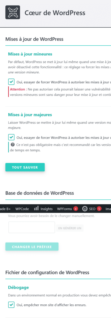 La mise à jour de WP doit être activé en mode « automatique ». J’ai planté le site en faisant une mise à jour manuelle. On ne m’y reprendra pas !!! Attendez 48 heures avant de mettre une extension à jour, vous me remercierez un jour !