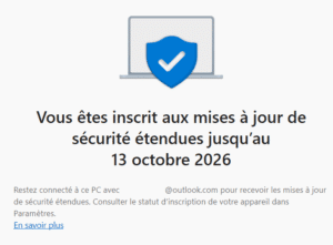 Option 1 : Vous voulez prolonger WINDOWS 10 jusqu’à Octobre 2026.